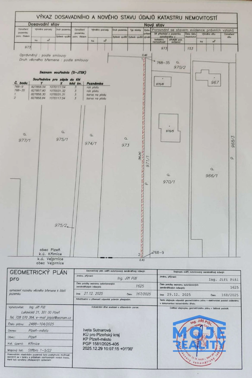 V případě doplňujících informací, či návrhu případného dělení pozemku jsem Vám k dispozici na osobní prohlídce nebo telefonicky.