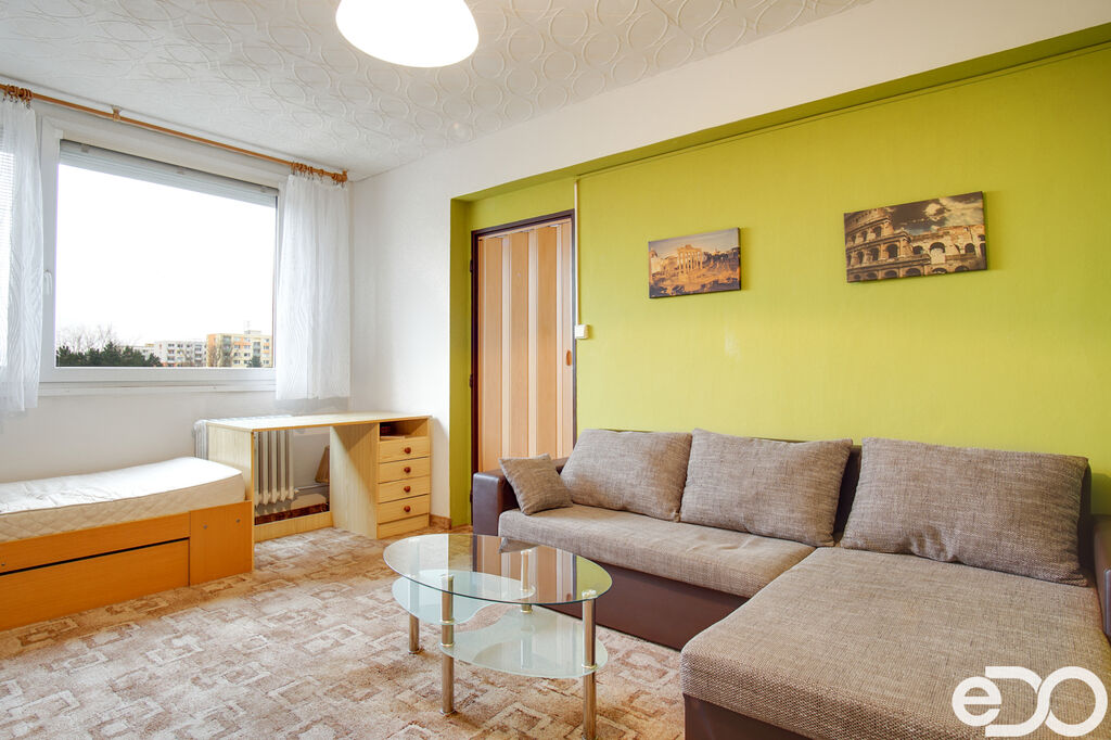Hledáte klidné bydlení v Mladé Boleslavi? Nabízíme k prodeji byt o dispozici 1+1,38 m2, který se nachází ve 3. patře panelového domu v tiché a příjemné lokalitě. Byt je orientovaný na JV, takže je celý den příjemně prosvětlený a okna vedou do klidného vnitrobloku s výhledem do zeleného parku.