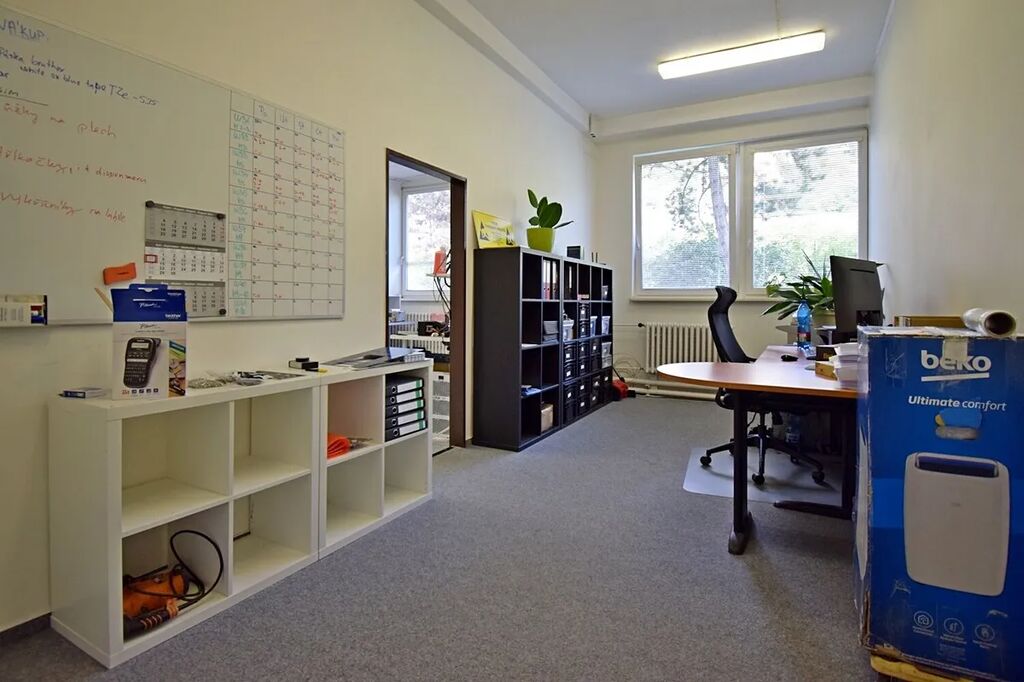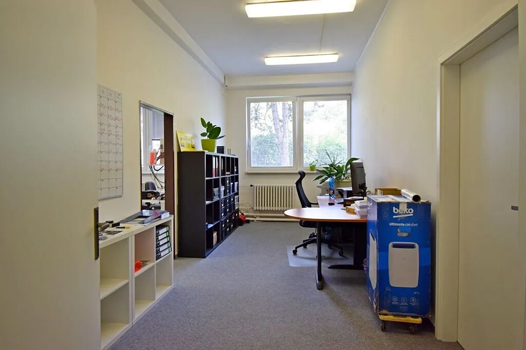 Nabízíme nebytové prostory 136 m² v přízemí třípatrové budovy bývalého areálu JANKA Radotín. Prostory jsou v současné chvíli využívány jako dílny pro malovýrobu, nicméně jejich využití je v podstatě neomezené. Jedná se o 5 místností, z nichž většina má samostatné vstupy z prostorné chodby a současně jsou vzájemně propojeny. Součástí pronájmu je rovněž sprchový kout se dvěma toaletami a dále malý skládek. V případě potřeby je možné si pronajmout další dvě kanceláře vybavené nábytkem a 2 skládky 4,3 a 4,4 m² se sdíleným příslušenstvím ve třetím patře stejné budovy. Nízké provozní náklady. Parkování je možné pronajmout před domem. Cena za 2 parkovací místa činí 1.500 Kč. Služby jsou rozpočítávány podle spotřeby a počtu osob. Volné od 1.11.2025.