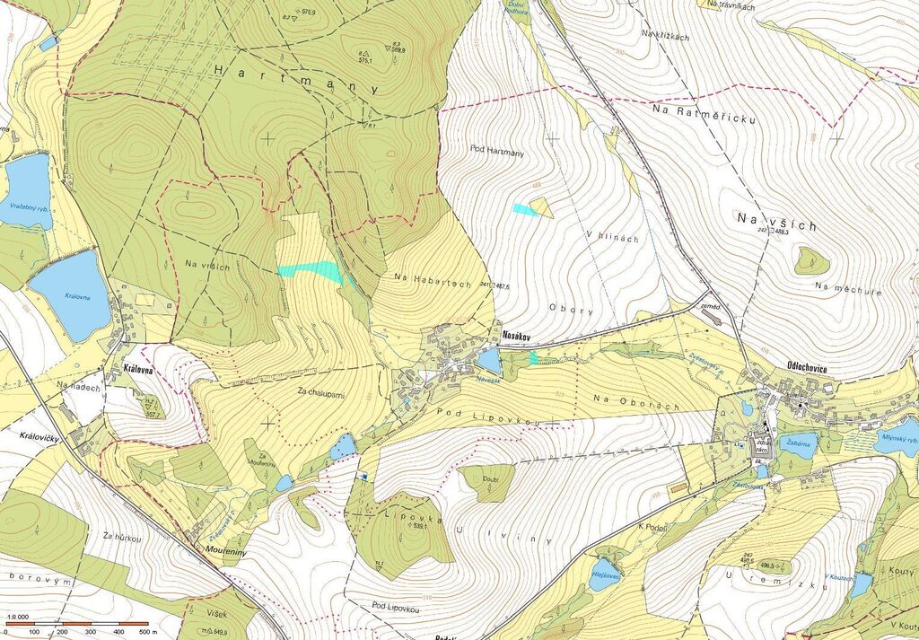 Pozemky jsou vedeny jako trvalý travní porost o výměře 9304 m2 a orná půda o výměře 1978 m2. Výměra je tvořena čtyřmi samostatnými parcelami, po dohodě s vlastníkem je možné odkoupit i jednotlivé části.