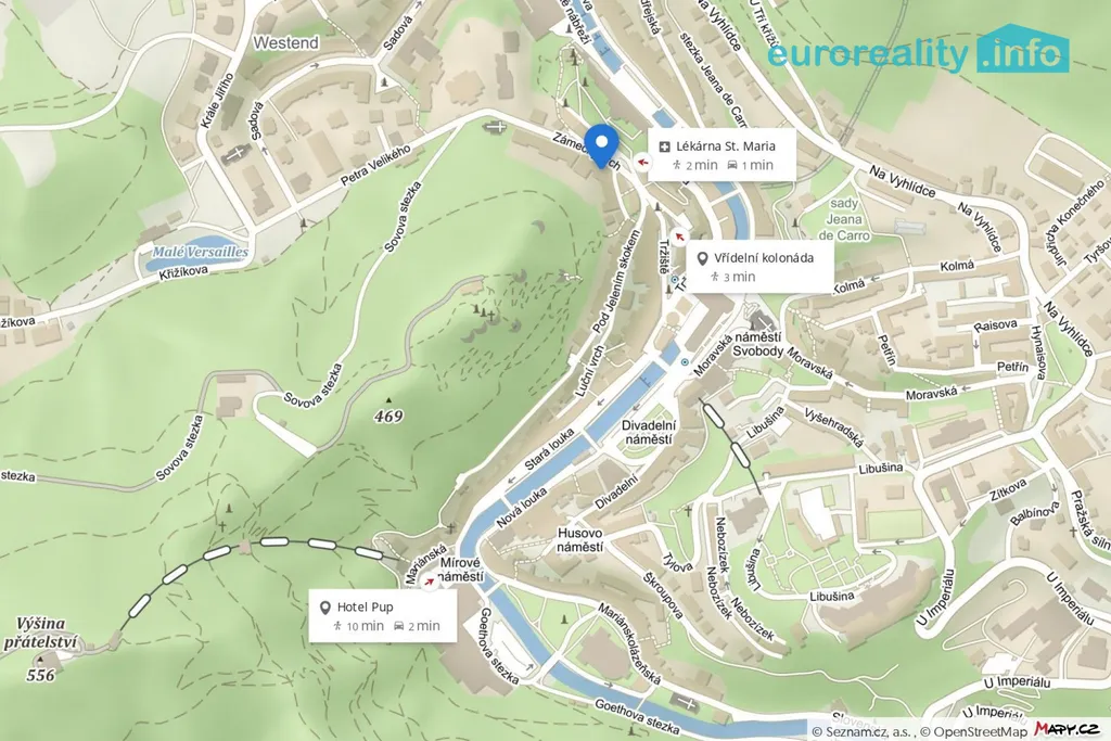 Prodej výjimečného bytu o výměře 301 m² v historickém centru Karlových Varů, pouhých 100 metrů od Zámecké kolonády. Tento unikátní prostor situovaný na prestižní adrese Zámecký vrch nabízí po rekonstrukci možnost vybudování luxusního rezidenčního bydlení s prostornou terasou o velikosti 64 m². Z terasy se otevírá nádherný výhled na lázeňskou část města. Prostor je již zkolaudován jako bytová jednotka, což výrazně zjednodušuje proces přestavby. K projektu zimní zasklené terasy se pozitivně vyjádřil Národní památkový ústav, což potvrzuje flexibilitu dalšího využití. Objekt se nenachází v ústředním seznamu kulturních památek, ale spadá do městské památkové rezervace Karlovy Vary. V těsné blízkosti naleznete vyhlášené kolonády, Vřídelní pramen, lanovou dráhu k vyhlídce Diana či romantickou Zámeckou věž. Lokalita patří k nejprestižnějším v celém městě a poskytuje jedinečnou atmosféru spojenou s lázeňskou tradicí i turistickým ruchem. Pro více informací kontaktujte makléře.