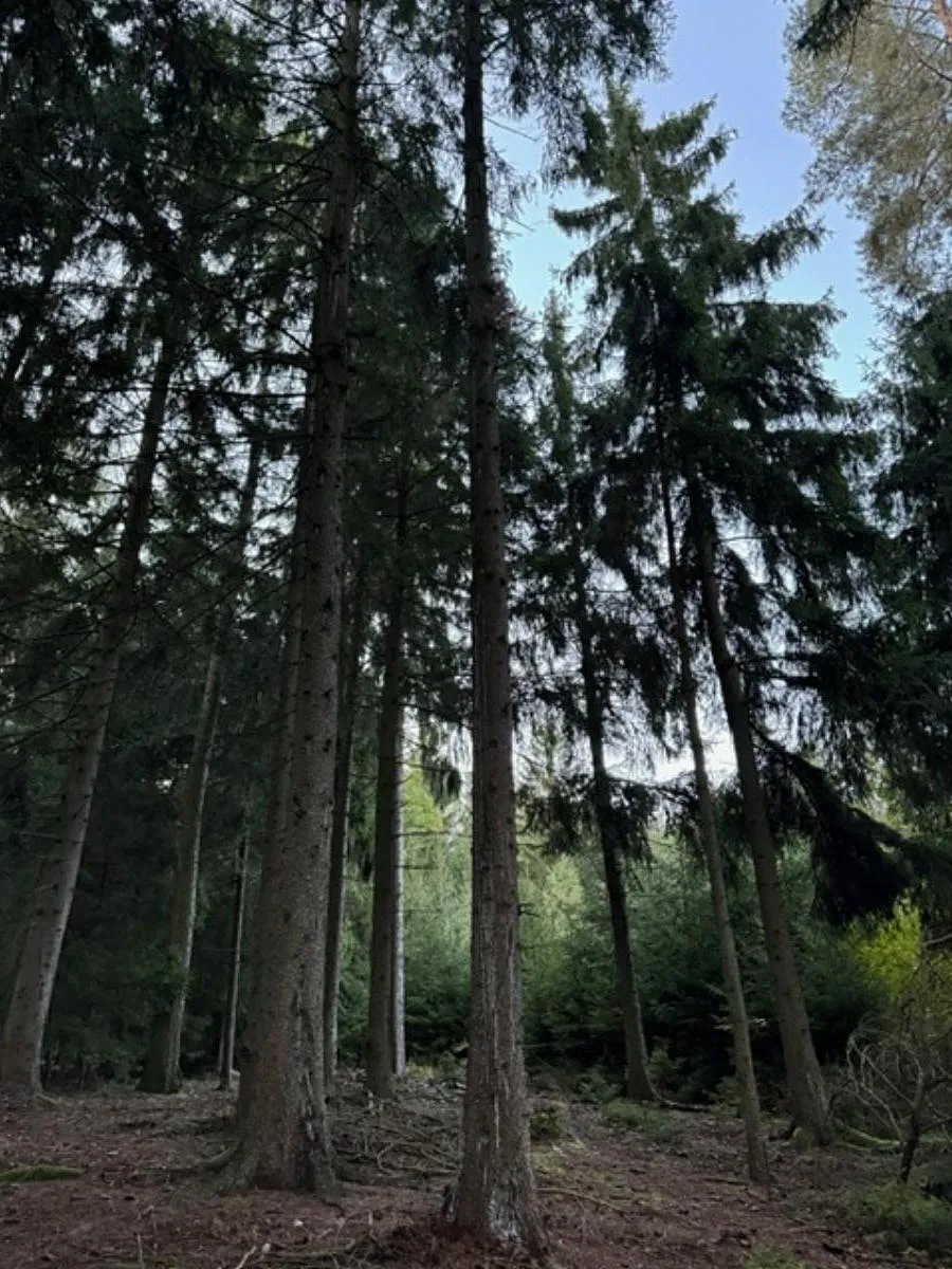Dále p.č 1201 vedená jako lesní pozemek o celkové výměře 1898 m2, stáří lesa 120 let, hlavní zastoupení dřevin dle LHO borovice, smrk.