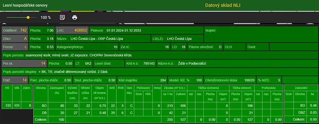 Stáří lesa a LHO viz. foto.