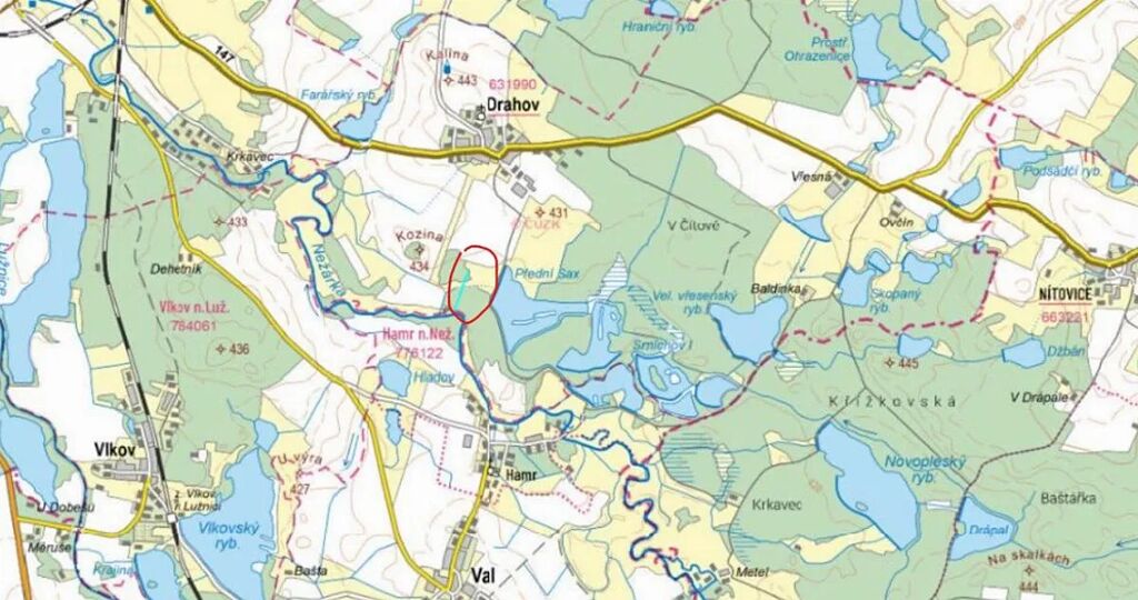Dále p.č. 3192 vedená jako vodní plocha o celkové výměře 653 m2, vlastníme podíl 3/4 tudíž 490 m2.