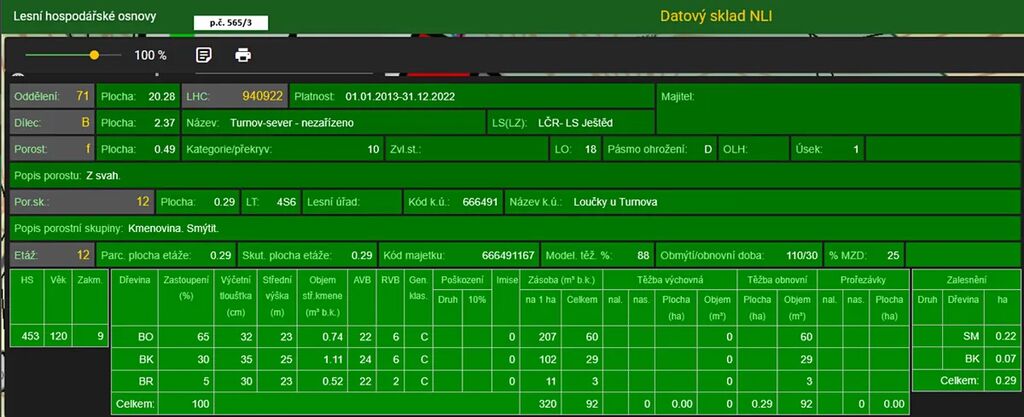 Dále se jedná o p.č. 565/3 vedená jako lesní pozemek o celkové výměře 2 324 m2.