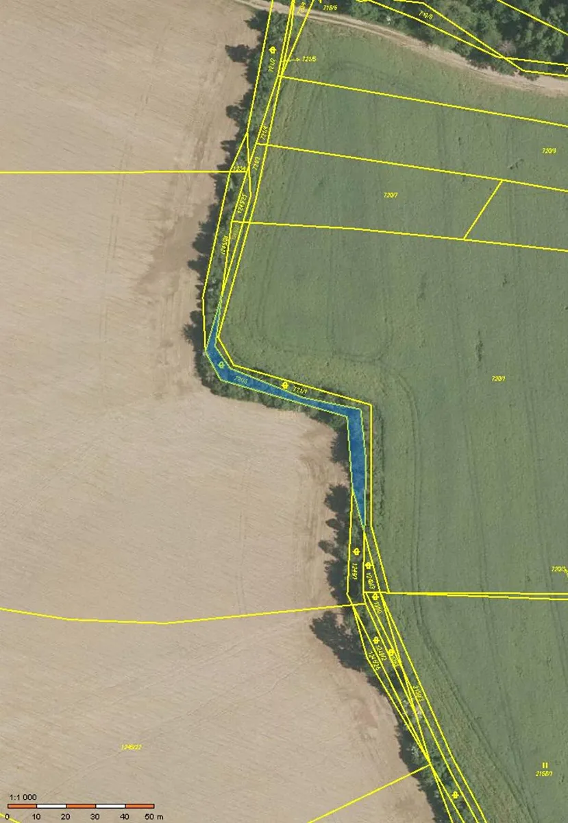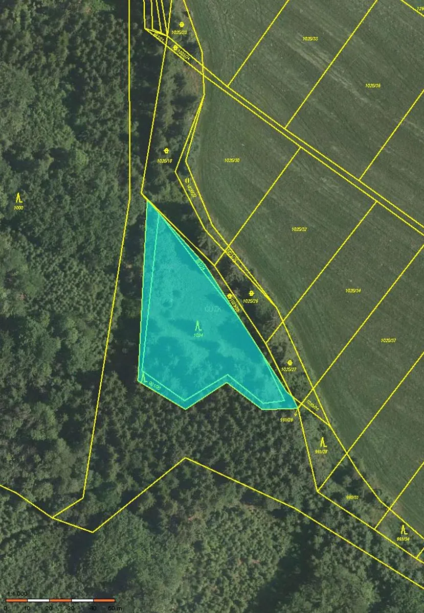 Dále p.č. 1024 vedená jako lesní pozemek o celkové výměře 2 724 m2, vlastníme podíl 1/2 s výměrou 1 362 m2.