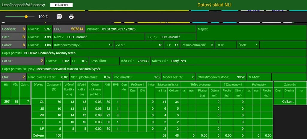 Dále p.č. 364/4 vedená jako lesní pozemek o celkové výměře 8 185 m2.