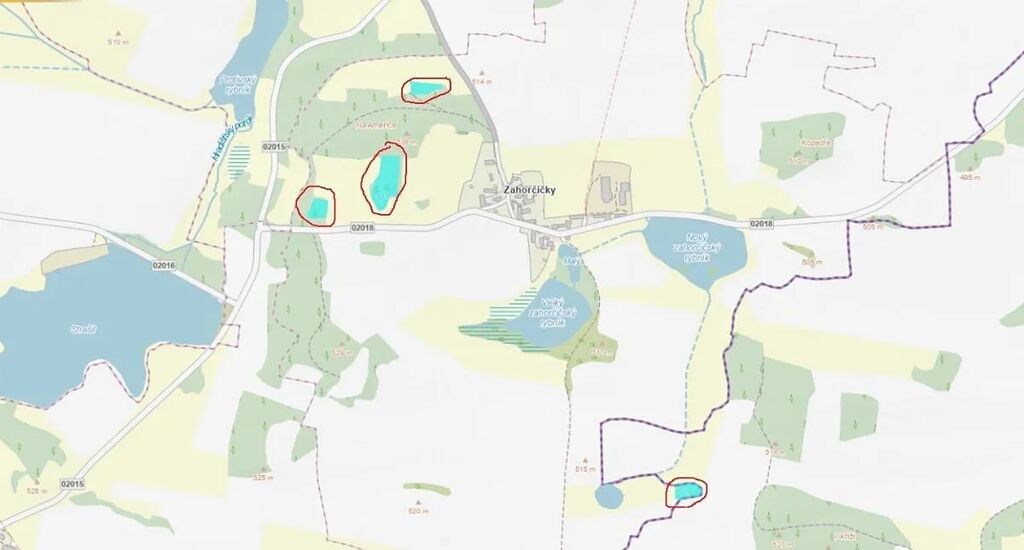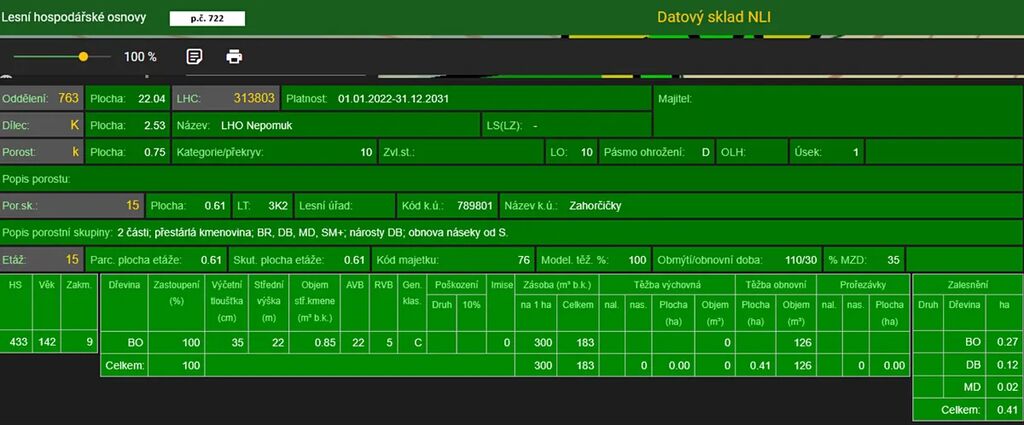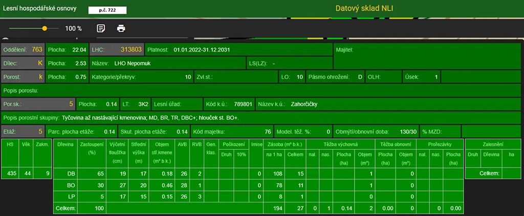 Dále se jedná o p.č. 722 vedená jako lesní pozemek o celkové výměře 7 458 m2, vlastníme podíl 2/9 tudíž 1 657 m2.
