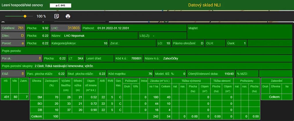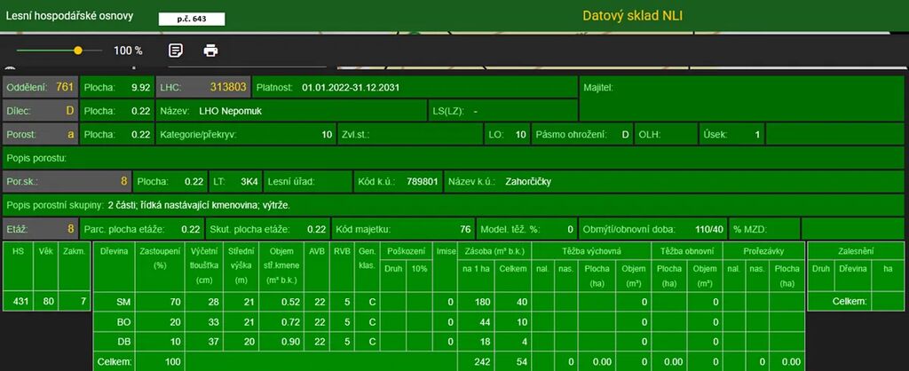 Dále se jedná o p.č. 643 vedená jako lesní pozemek o celkové výměře 1 544 m2, vlastníme podíl 2/9 tudíž 343 m2.