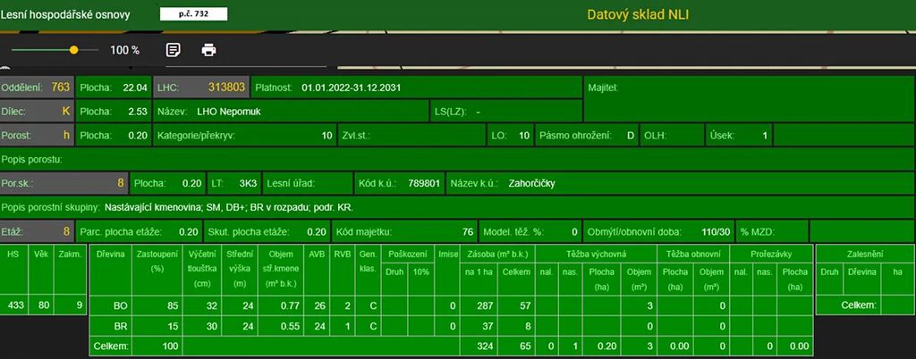 Dále se jedná o p.č. 732 vedená jako lesní pozemek o celkové výměře 1 966 m2, vlastníme podíl 2/9 tudíž 437 m2.