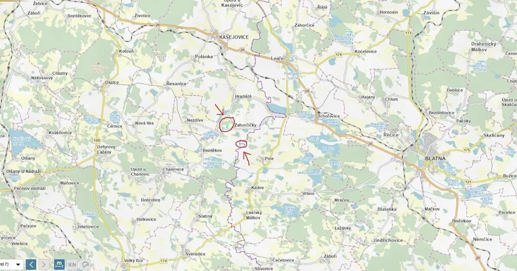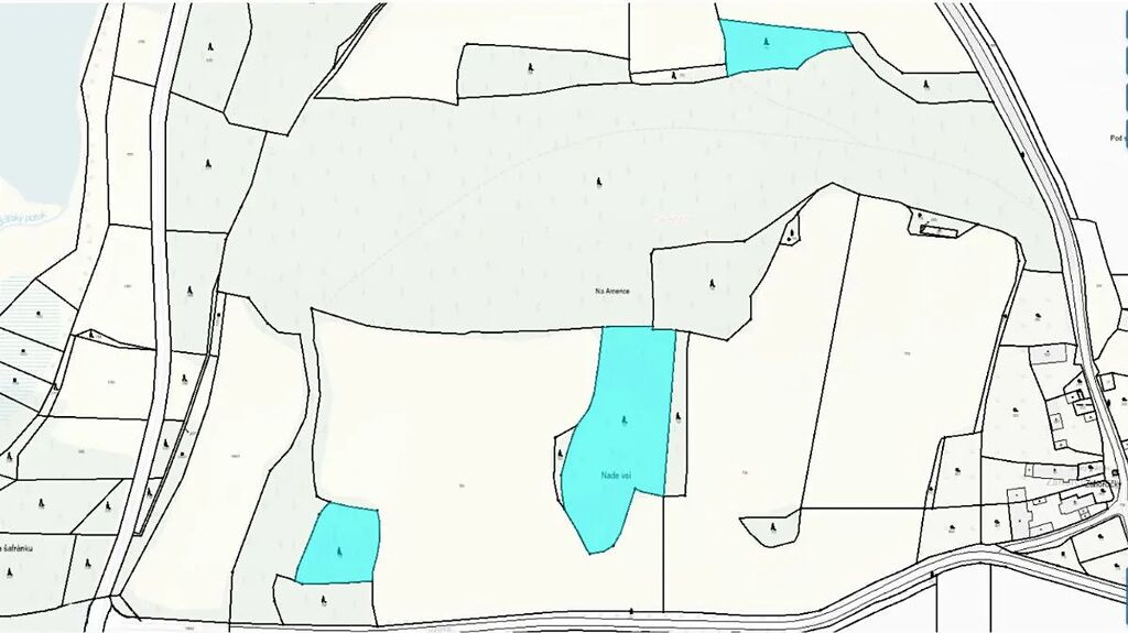 Vlastníme podíl 2/9, tudíž celková výměra pozemků je 3 093 m2.