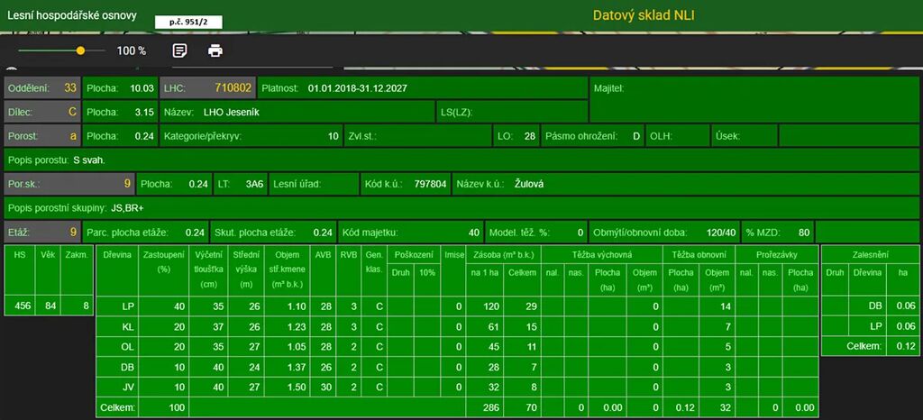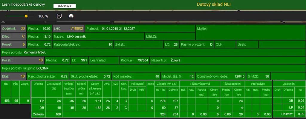 Stáří lesa a LHO viz. foto.