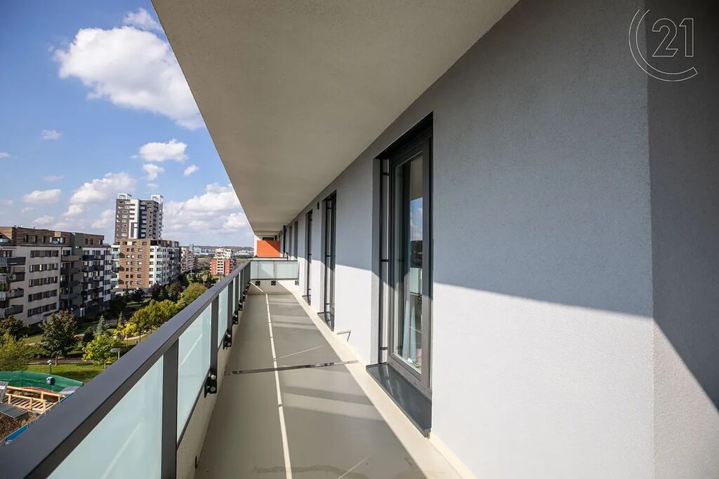 Srdcem bytu je velkorysý obývací pokoj, který vás okouzlí svou světlostí a propojením s moderní kuchyní i jídelním koutem. Díky přímému vstupu na terasu o velikosti 16 m² a lodžii o celkových 30 m², které obepínají velkou část bytu, získává interiér unikátní propojení s venkovním prostorem. Ať už si ráno vychutnáte kávu s výhledem nebo večer relaxujete s rodinou, vždy budete mít pocit, že příroda je součástí vašeho domova.
