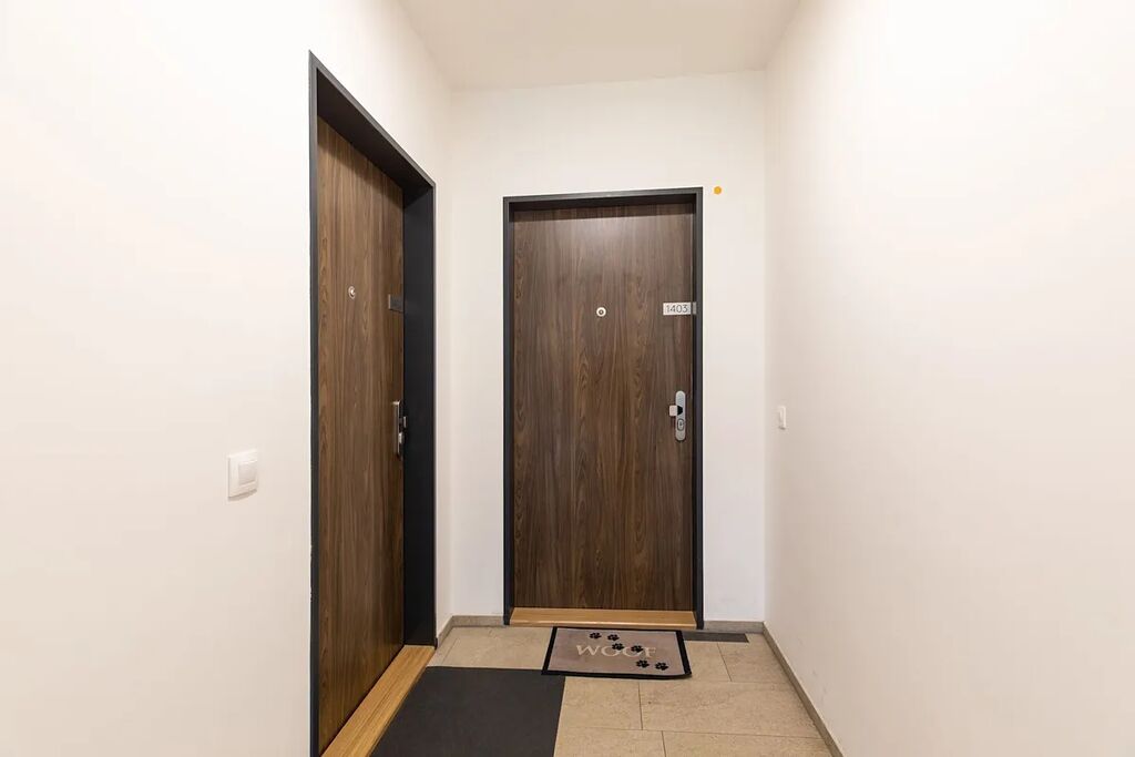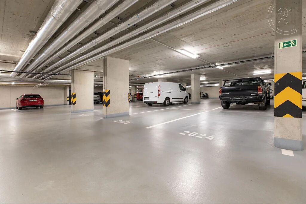 K bytu náleží dvě garážová stání (garážová vrata se ovládají přes mobilní telefon) a velký zděný sklep s regály, kde uložíte vše, co potřebujete. Terasa je navíc vybavena vodovodem – ideální pro péči o zeleň, grilování či letní osvěžení. Přístup do bytu je přes chodbu, na které se nacházejí pouze 2 bytové jednotky. Vstup je možný pouze přes čip, což zdokonaluje pocit soukromí.