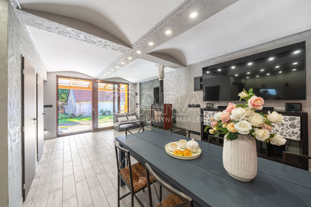 Hlavní budova je dvoupatrový, částečně podsklepený dům, který současní majitelé z poloviny zrekonstruovali pro vlastní bydlení. Budova sestává ze dvou bytů se samostatnými vchody, přičemž první je zcela zrekonstruovaný, má dispozici 3+1 s jídelnou, dvěma koupelnami a balkonem a je vybudován ve velmi vysokém standardu. Druhý byt je ve fázi výstavby a poskytuje tak prostor pro vlastní realizaci nových majitelů, včetně úpravy dispozice. Na pozemku se dále nachází velká dvoupatrová stodola, připravená taktéž pro realizaci nových záměrů. U stodoly se rozkládá jezírko a na pozemku další drobné stavby a upravované vzrostlé porosty.