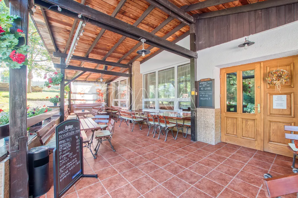 Hlavní budova penzionu o ploše 182 m² v přízemí a dalších 110 m² v patře prošla částečnou rekonstrukcí. V roce 2010 byla vyměněna všechna okna za plastová s dvojskly, v roce 2015 proběhla kompletní rekonstrukce pokojů včetně elektroinstalace, rozvodů vody a odpadů. V patře se nachází pět pokojů s vlastním sociálním zázemím, s celkovou kapacitou 16 hostů. Přízemí tvoří plně funkční restaurace s barem, kuchyní, sklady, technickým zázemím i klenbovým sklepem. Restaurace má kapacitu 60 míst uvnitř a dalších 30 na venkovní terase.