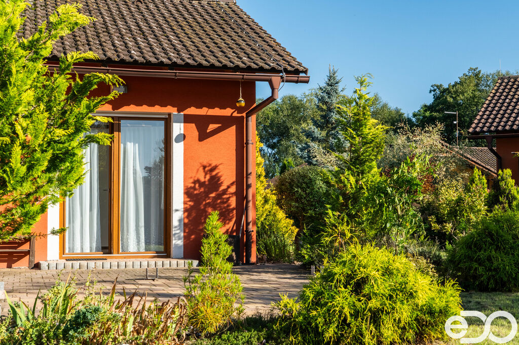 Zahrada o rozloze 789 m² byla navržena a realizována přímo majiteli a je jejich pýchou. Najdete tu vzrostlé okrasné stromy, jezírko, zahradní domek s posezením, ohniště i přístřešek na dřevo. Terasa s výhledem na rybník je ideálním místem pro rodinná setkání i chvíle odpočinku. Celý pozemek je oplocený, takže je bezpečný pro děti i domácí mazlíčky. Je to místo, které vás bude bavit – pro relax, rodinné večery i pěstování vlastního ovoce a zeleniny.