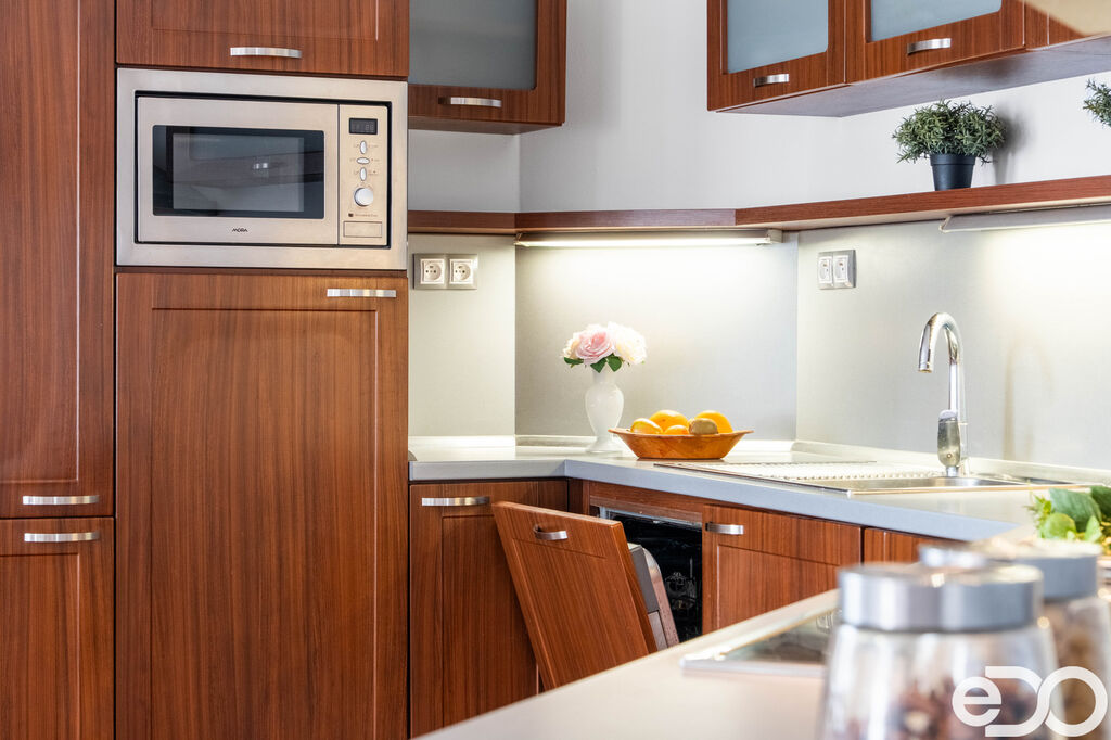 Dům je z roku 2009, je vidět, že o něj bylo dobře postaráno. Je částečně vybavený nábytkem, kuchyňská linka má všechny vestavěné elektrospotřebiče včetně lednice s mrazákem. Plastová okna s vnitřními žaluziemi a elektricky ovládanými venkovními roletami a částečně s manuálními roletami. Na podlahách je plovoucí podlaha a dlažba, vytápění je řešeno podlahovým topením a radiátory napojenými na elektrokotel. K tomu je v domě krbová vložka s výměníkem a rozvodem tepla do všech místností, ohřev vody zajišťuje bojler. Dispozice nabídne prostorný obývací pokoj s krbem propojený s kuchyní a jídelnou, ložnici, dva dětské pokoje, pracovnu, šatnu, koupelnu s vanou i sprchou, samostatné WC, technickou místnost a přímý vstup z dvojgaráže.