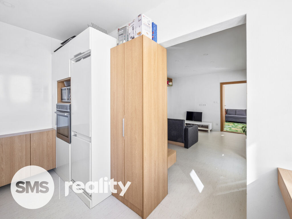 Kuchyň je kompletně vybavena vestavěnou lednicí, myčkou nádobí, troubou a indukční varnou deskou – stačí si přinést jen své osobní věci.