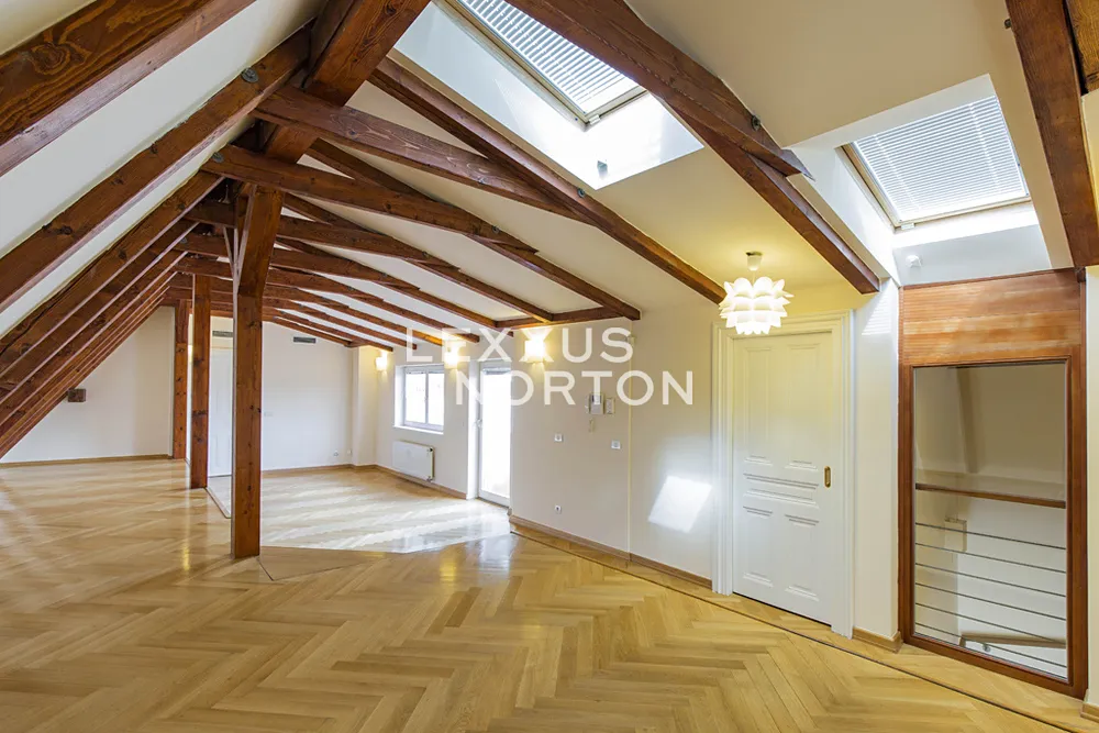 Nabízíme reprezentativní, nezařízený, mezonetový 4 ložnicový byt k pronájmu o velikosti 285 m2 s terasou, situovaný v 5. a 6. patře neorenesančního domu s výtahem. Nemovitost se nachází v krásné lokalitě Prahy 5 - Malá Strana disponující veškerou občanskou vybaveností a dobrou dopravní infrastrukturou.