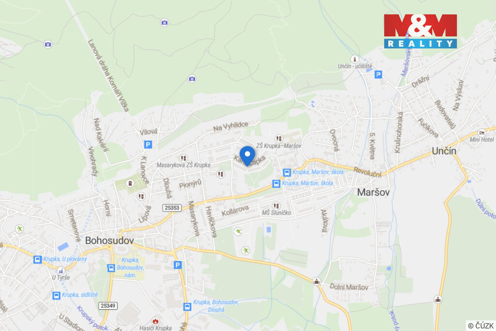 Nabízíme k prodeji byt 1+1 o užitné ploše 38 m² v klidné části obce Krupka. Byt se nachází ve 2. patře panelového domu s celkem šesti nadzemními podlažími. Nemovitost je v dobrém stavu a je ideální pro jednotlivce nebo pár hledající útulné bydlení. K dispozici je také podzemní podlaží pro úložné prostory. Panelová konstrukce zajišťuje dobrou izolaci a energetickou úspornost. Okolí nabízí klidné a příjemné prostředí s dobrou dostupností občanské vybavenosti. Nepropásněte příležitost pořídit si tento útulný byt v perspektivní lokalitě. Pro více informací a prohlídku nás neváhejte kontaktovat.