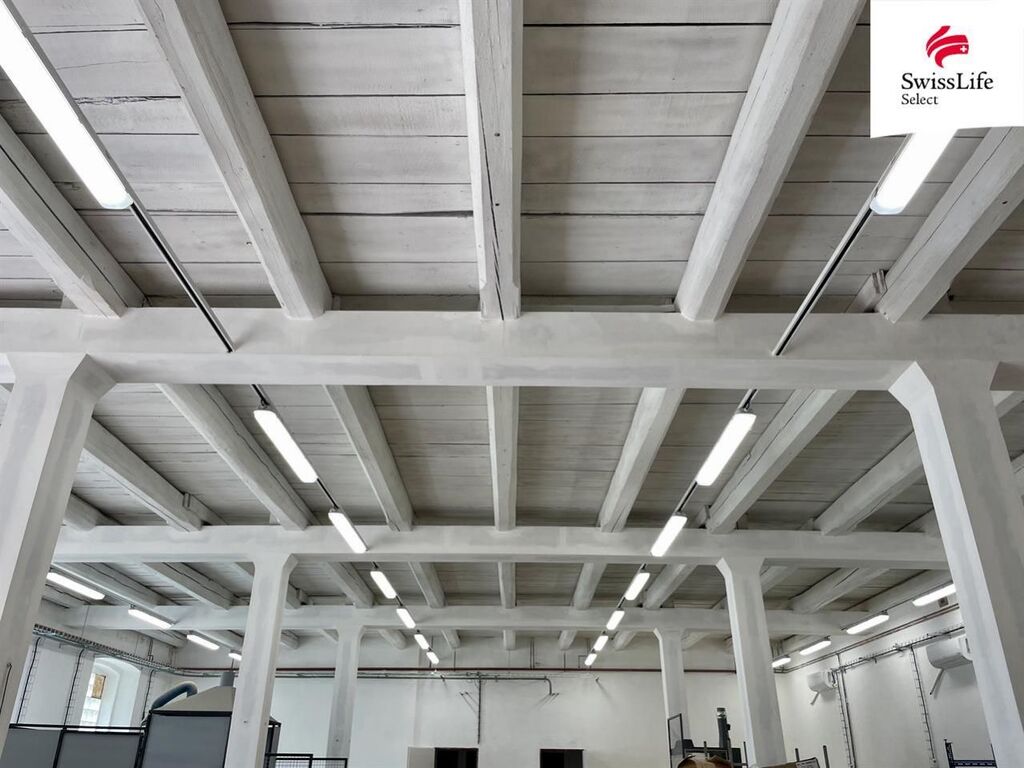 Administrativní zázemí nabízí 3 pěkné kanceláře (16 m, 16 m a 18 m), příjemnou denní místnost se světlíkem 26 m, kde je i kuchyňka, dále archiv/spisovnu se světlíkem (22 m). Zázemí administrativy potřebuje drobná dokončení, zalití a finalizaci podlah, výměnu oken a interiérových dveří. Rozvody vody a elektřiny jsou v této části také kompletní. Nové vchodové dveře.