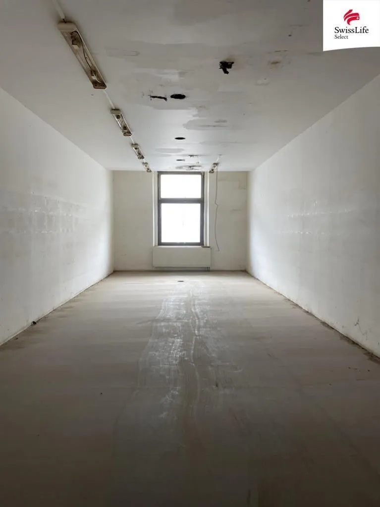 V patře, které je přístupné po širokém schodišti, jsou tři samostatné velké místnosti po cca 45 m, z každé strany ještě menší (21m a 23 m). Najdete tu širokou středovou chodbu (104 m) a původní sociální zázemí. Na podlaze je lino v docela dobrém stavu. Výtah byl zrušený a do patra je přístup pouze po schodech. Jinak je vše připraveno k dokončení podle potřeb a představ nového majitele. Investice ale není vysoká, patro se upozadilo kvůli investicím do přízemí a do celkového technického stavu budovy.