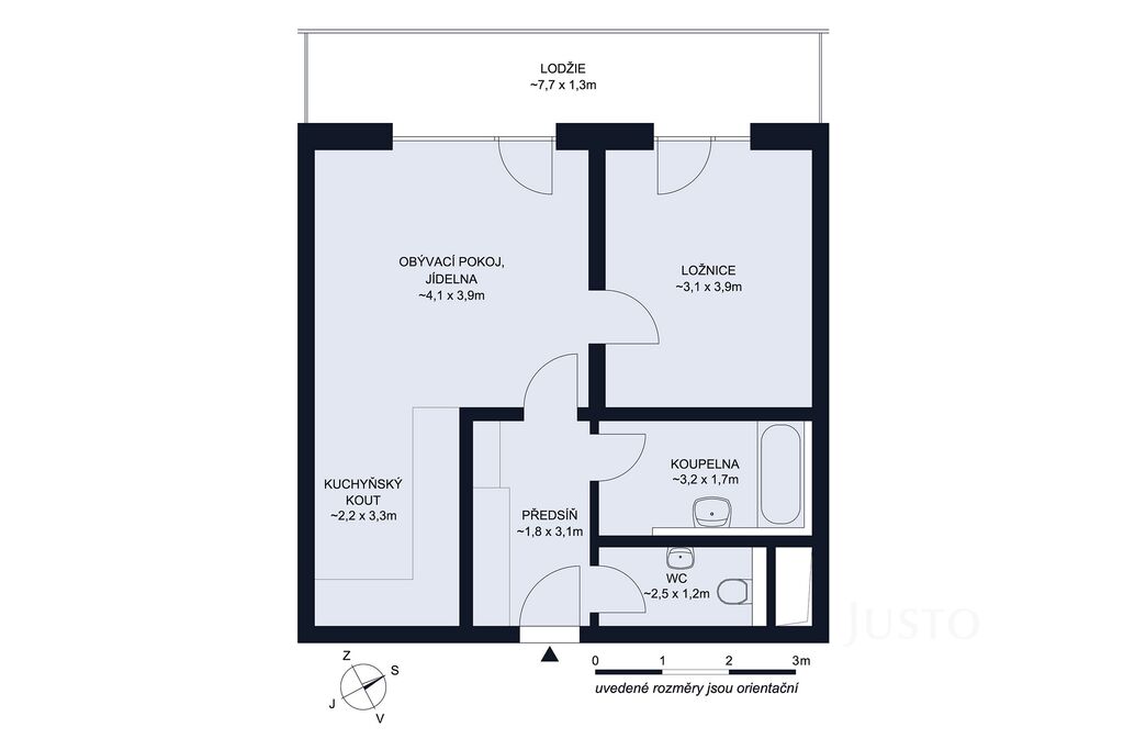 • podlahová plocha bytu včetně vnitřních příček 49,91 m²