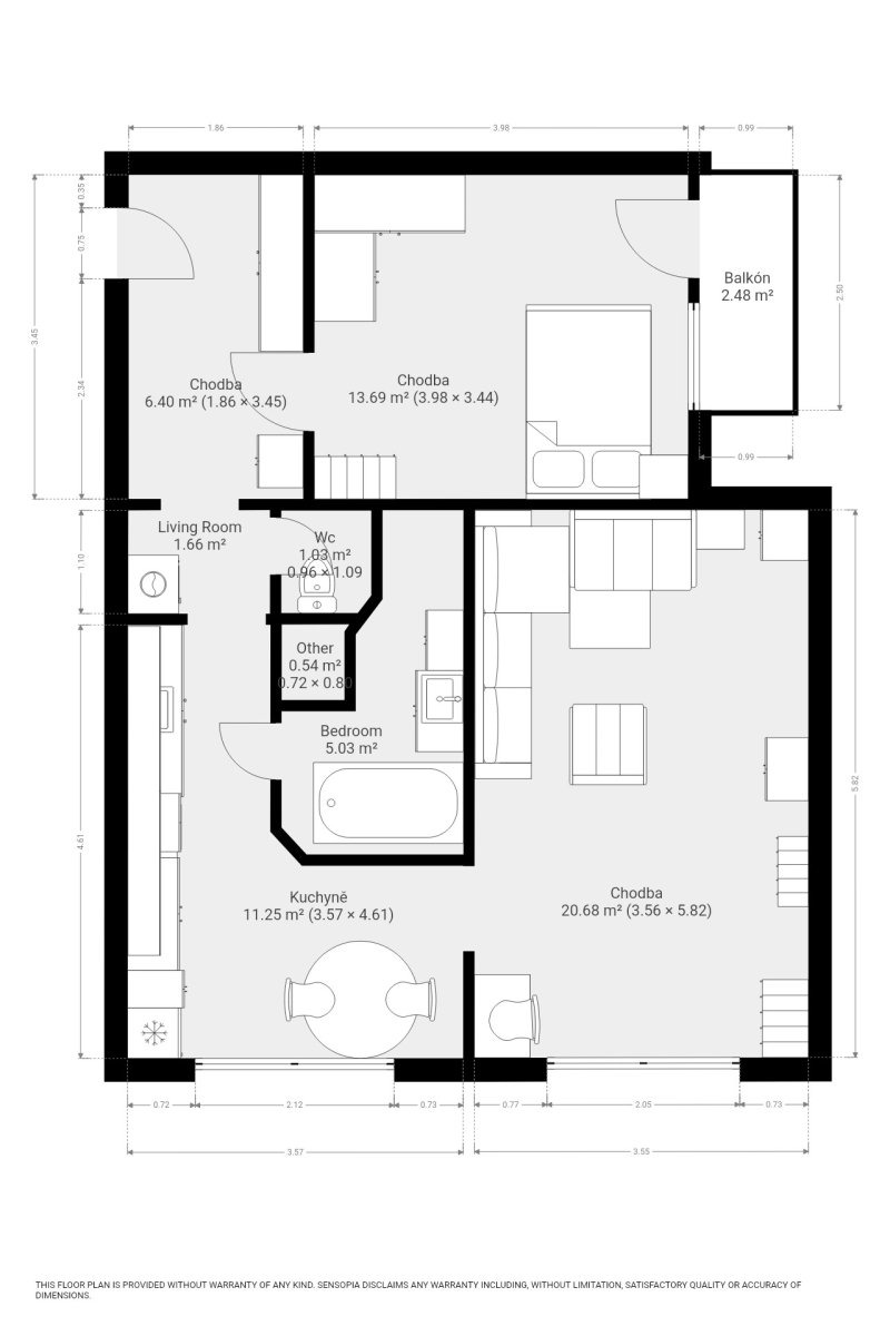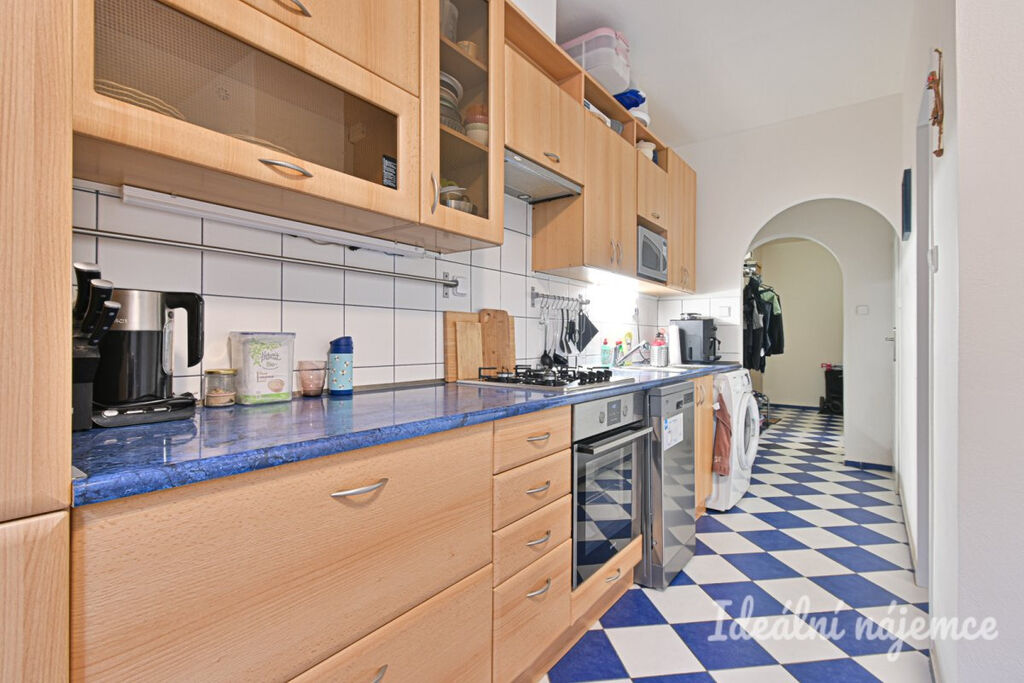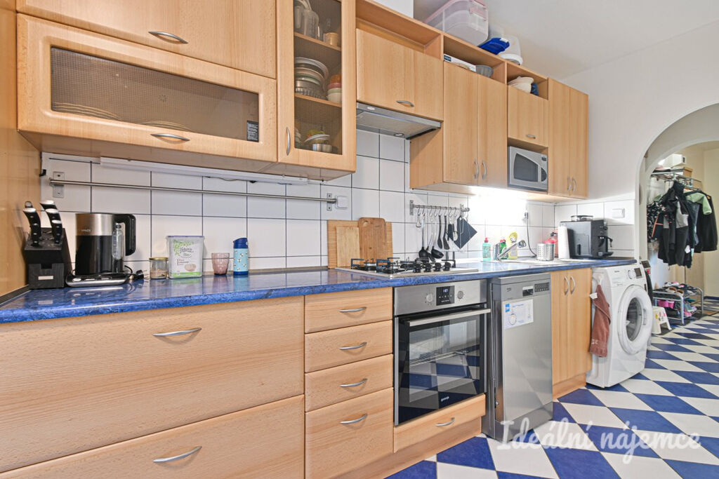 Kuchyně je vybavena prostornou a praktickou kuchyňskou linkou a jídelním stolem. Kuchyňská linka disponuje spotřebiči jako lednice, varná deska, trouba, myčka, pračka a digestoř.