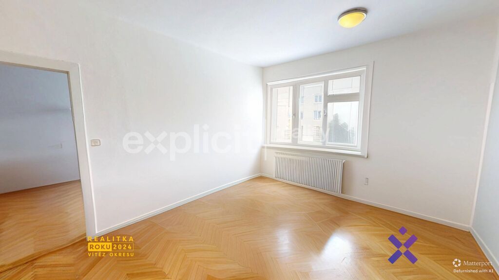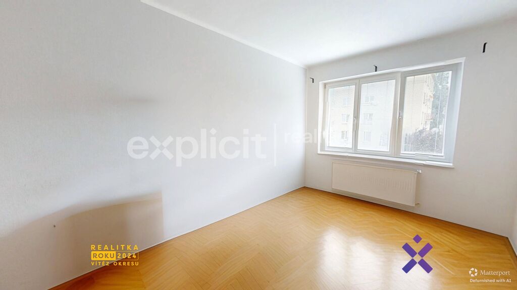 Ve vstupní chodbě bytu je praktická komora pro úklidové potřeby či kabáty. Obývacímu pokoji dominuje velké okno, které dodává bytu příjemnou a otevřenou atmosféru. Na obývací pokoj navazuje ložnice vybavená vestavěnými skříněmi, které nabízí velkorysý úložný prostor.