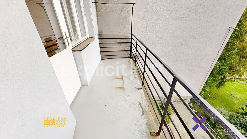Koupelna je zařízena vanou s možností sprchování, pračkou a toaletou. Kuchyňská linka je pár let nová, moderní, se sporákem a lednicí. Z kuchyně se vstupuje na velký, šestimetrový balkon s nádherným výhledem do zeleně a klidné zahrady – ideální místo k ranní kávě i večernímu odpočinku. Přestože si tu užijete ticho a pohodu, centrum města je vzdálené jen pár minut chůze.