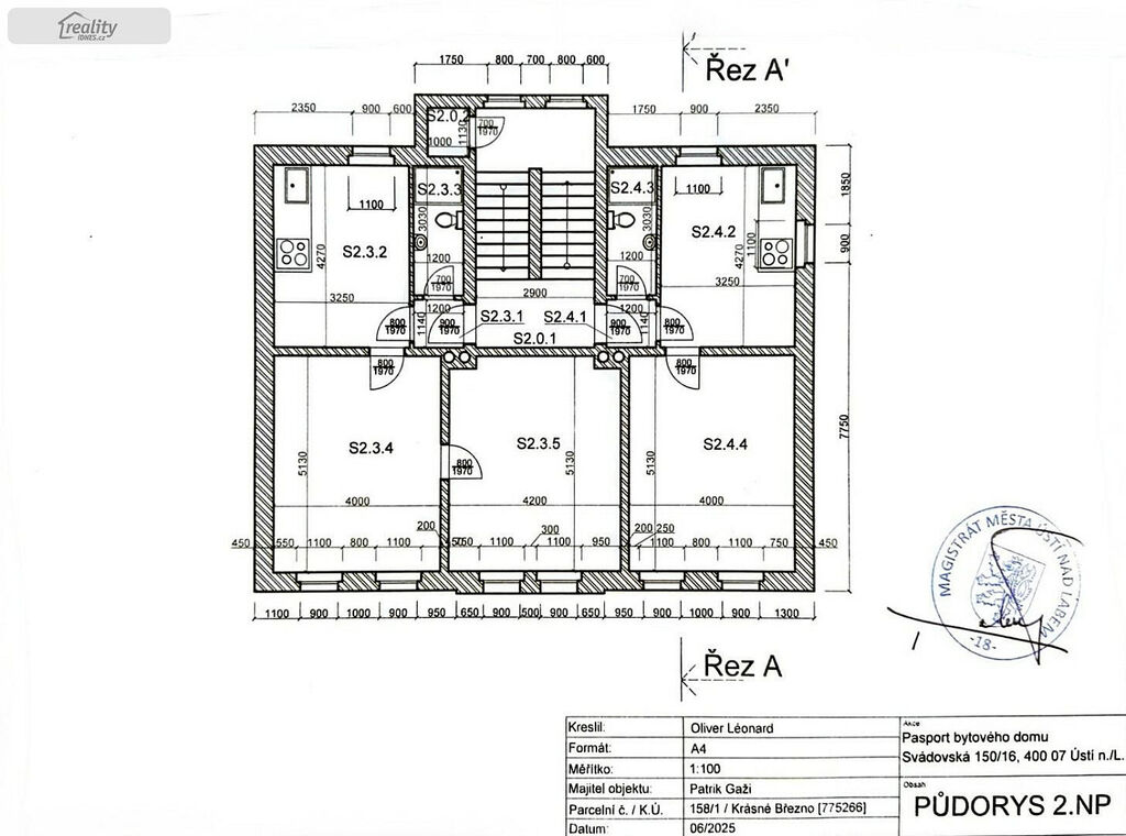 Zatím je hotová nová střecha s krovy (krytina plech), stropy, podlahy, trámy, rozvod elektřiny, vody, nové okna. Součástí je pasport bytového domu.