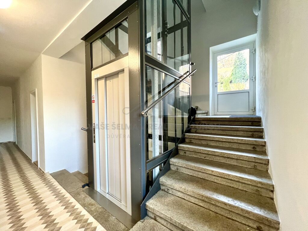 V domě je výtah. Byt je v 3.nadzemním podlaží. Ale z jedné strany je svah, takže je v úrovni se zemí, nebo snížené přízemí by se to dalo nazvat.