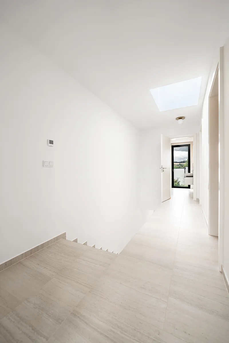 Součástí kupní ceny jsou navíc již připravené rozvody pro napojení klimatizace a osazení fotovoltaických panelů na střechu, venkovní žaluzie na všechna okna na elektrické ovládání či skleněné zábradlí na schodišti.
