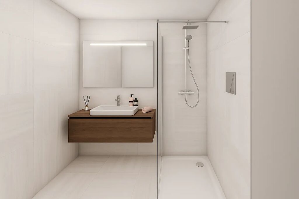 Prostorný a moderní třípokojový byt o ploše přes 76 m2 s orientací na východ se nachází ve čtvrtém, nejvyšším nadzemním podlaží. Součástí kupní ceny je už i nadstandardně vybavená koupelna a klimatizace ve všech obytných místnostech. WC je samostatné. Z každé místnosti se francouzským oknem vstupuje na vlastní balkón (3x6 m2).