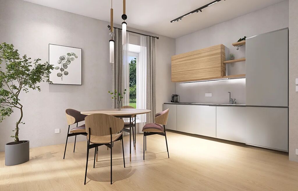 Teplovodní podlahové vytápění, kvalitní podlahové krytiny (vinyl/keramická dlažba), závěsné WC...
