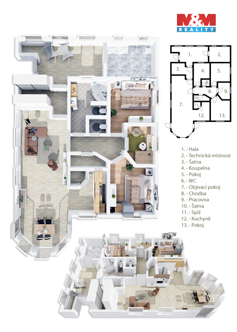 Hledáte bydlení v domě s velkou garáží, koupacím jezírkem a pohledem do zeleně ve všech koutech pozemku? Přivezte si osobní věci a můžete si začít ihned užívat dům o dispozici 3+1, se zahradou orientovanou na jih a poskytující naprosté soukromí. Krytá terasa, velká garáž i s prostorem pro dílnu a s úložnými prostory pro budoucího kutila, zahrada připravená pro fantazii paní domu samozřejmostí. Vstupní hala, technická místnost se schody na půdu s možností vybudování podkroví, 2 šatny, velký obývací pokoj s přípravou pro krb, kuchyň se spíží, 2 velké ložnice, pracovna, samostatné WC a velká koupelna. Prostorný zahradní domek pro vše, co je potřeba u údržbě doma a zahrady. Obec Hluboš nabízí základní občanskou vybavenost, což z ní činí ideální místo pro rodinný život. Nedaleká Příbram vzdálená nabízí vše další, co je potřeba k životu – školy, obchody, kulturní Krásná okolní příroda láká k výletům do lesů či na historické památky. Sjezd z D4 je vzdálen 12 minut, Praha 32 minut