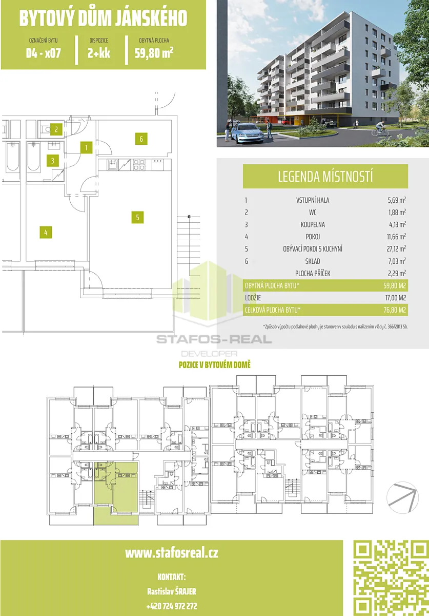 Začněte Vaší novou životní kapitolu bydlení a vychutnejte si radost z bydlení v zbrusu novém bytě. Prověřujeme evidenci exekucí, insolvencí a dluhů na zdravotním pojištění našich potenciálních nájemníků. Pro lepší představu o tomto bydlení vám doporučujeme shlédnout virtuální prohlídku, která vám také poskytne možnost změřit jakýkoliv rozměr tohoto bytu. Volné od listopadu/prosince 2025. Kompletní výběr bytů v tomto domě najdete v kartě projektu a na našich stránkách.