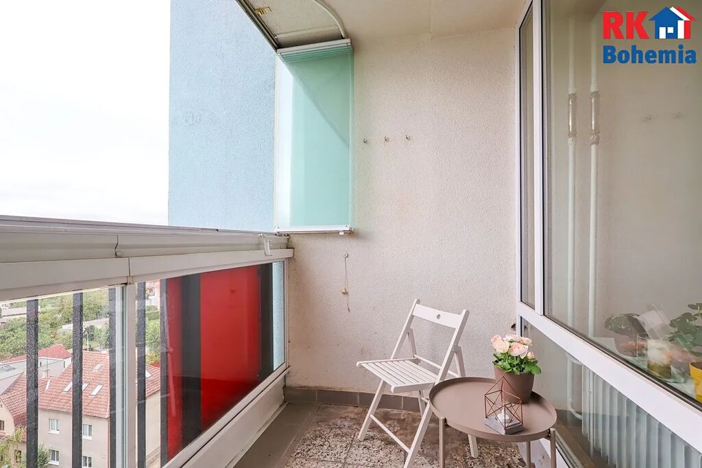 Největší benefit? Nádherný výhled! Ze zasklené lodžie, přístupné z obývacího pokoje, se otevírá panoramatický pohled na velkou část Prahy, včetně dominanty města Pražského hradu.