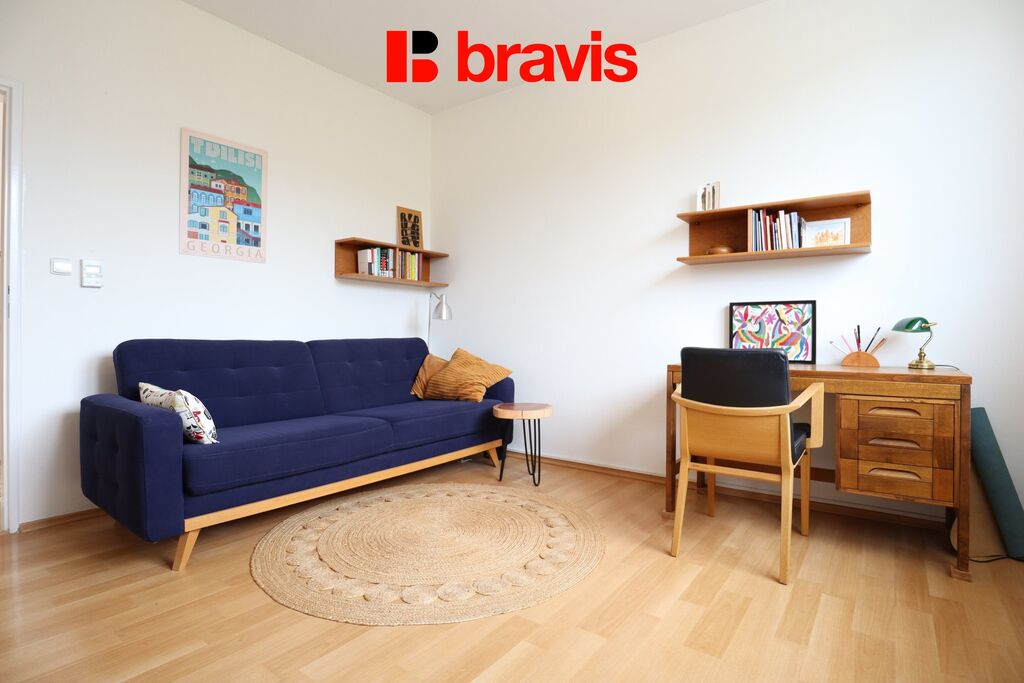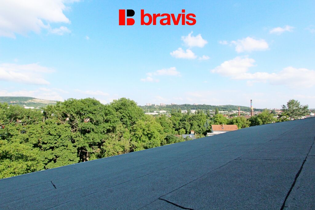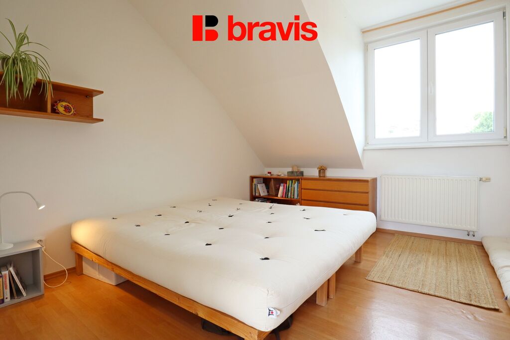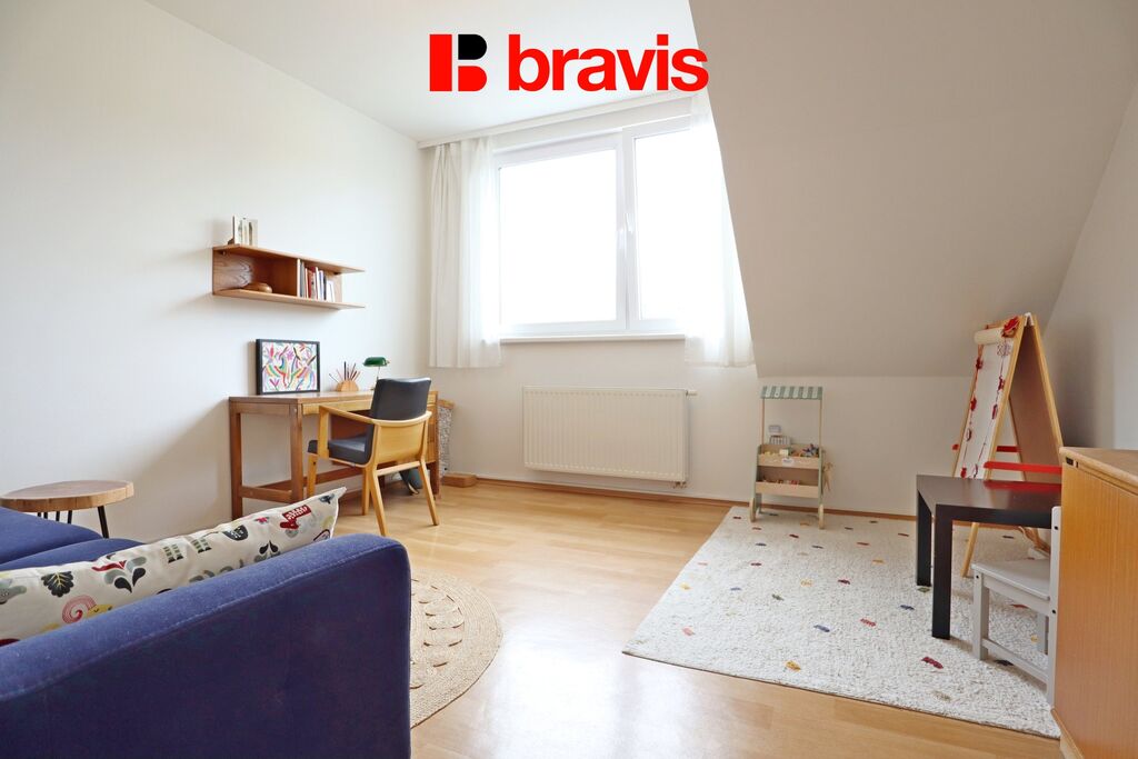 Podkrovní byt o velikosti 49 m², který se nachází ve 4. podlaží cihlového domu bez výtahu, s balkonem skýtajícím krásný výhledem do zeleně, údolí řeky Svitavy a na Hády. K využití je také sdílená zahrada pouze pro obyvatele domu.