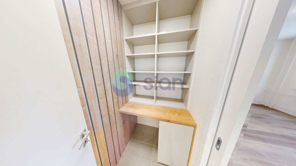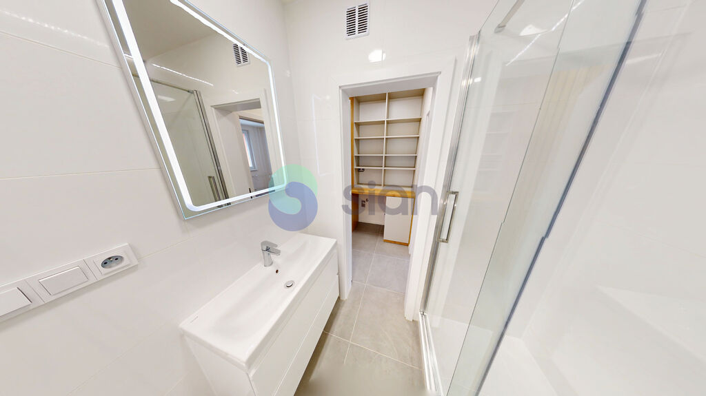 V bytě byla právě dokončena kompletní rekonstrukce. Původní umakartové jádro nahradilo zděné. V rámci kuchyně naleznete linku zhotovenou na míru se zabudovanou indukční varnou deskou a mikrovlnkou, granitovým dřezem, digestoří a dostatkem manipulačního i úložného prostoru. Koupelna disponuje sprchovým koutem a umyvadlem s umyvadlovou skříňkou, toaleta je závěsná. Velkou výhodou je komora s přípojkou na pračku a s úložným prostorem. Při vstupu do bytu je již důmyslně vyřešený šatní systém. Uvedené vybavení nábytek a doplňky jsou pouze vizualizací jak může Váš domov vypadat a jak využít skvělý potenciál prostoru.