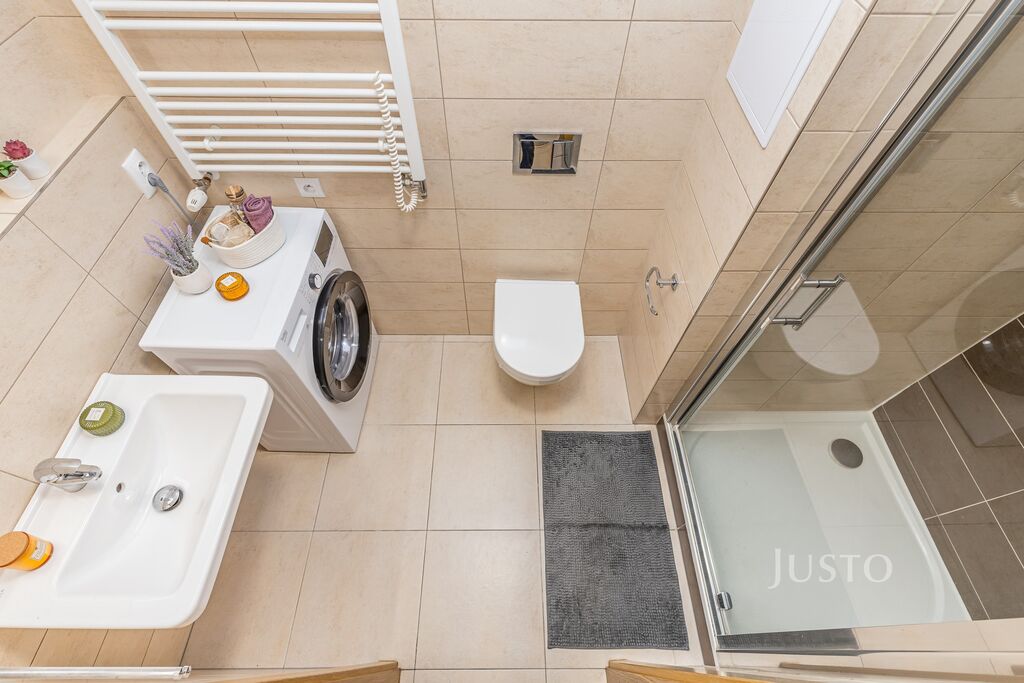 - koupelna je spojena s toaletou, obsahuje sprchový kout a umyvadlo