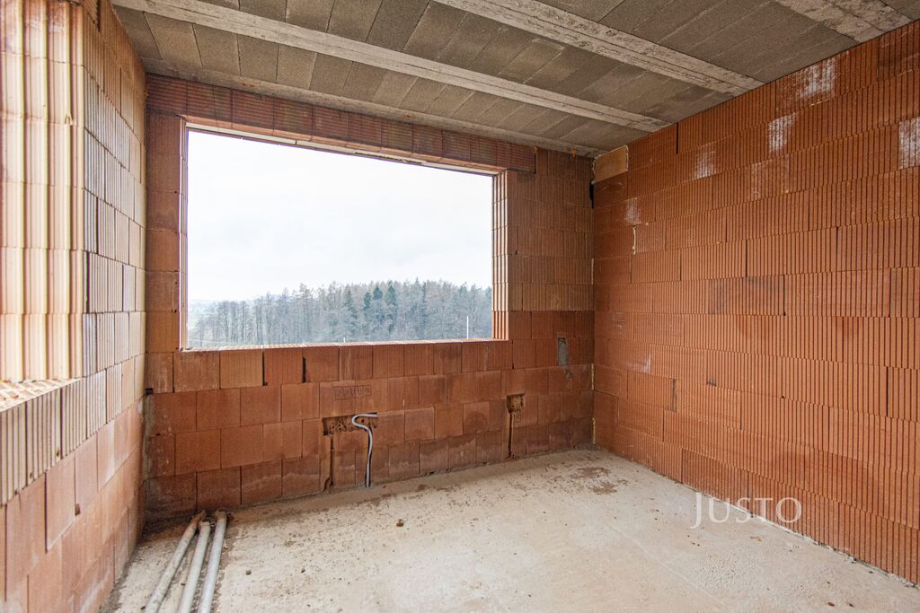 Na okraji obce Velká Polom je nyní ke koupi rozestavěná novostavba patrového rodinného domu o dispozici 5+kk na pozemku o celkové rozloze 946 m². Celková užitná plocha domu činí 136 m² + terasa (35 m²) a dle mého je dům skvěle navržen. Přízemí domu je tvořeno velkorysým prostorem o výměře 35 m² (obývací pokoj + jídelna + kuchyňský kout), dále potom pracovnou (nebo pokojem), technickou místností a samostatnou toaletou. Vrchní podlaží domu je tzv. obytné, tudíž jsou zde 3 ložnice, šatna, 2 koupelny a druhá toaleta. Co já vnímám jako obrovskou výhodu této nemovitosti je fakt, že si stále můžete (ale nemusíte) vymodelovat rozmístění místností v domě a nakonec dokončit dům dle svým přání a představ. A už nemusíte čekat na razítka na úřadech…