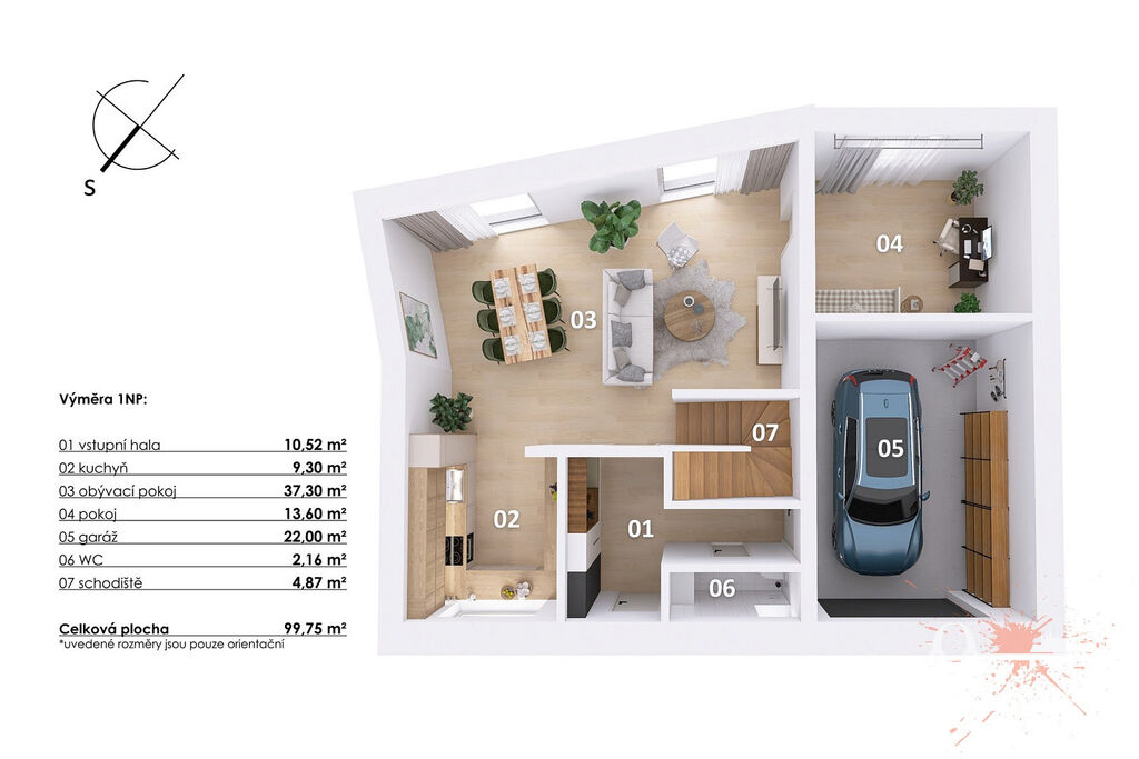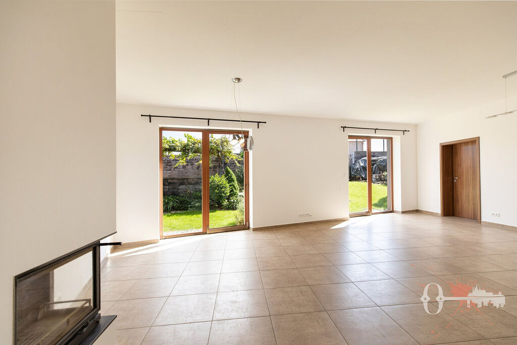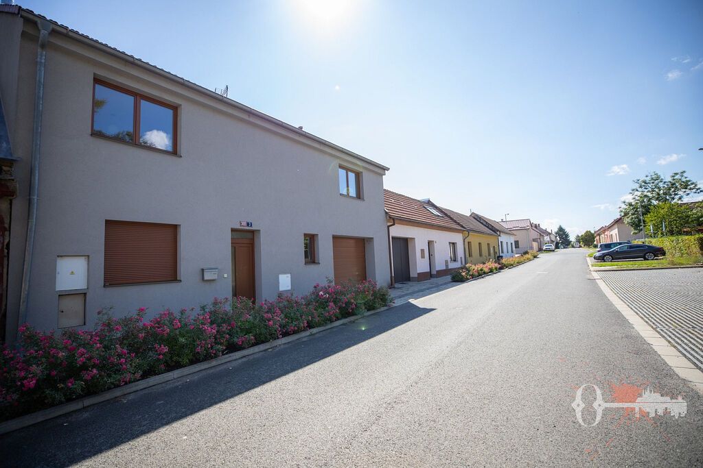 V přízemí se nachází světlý obývací pokoj s krbem a kuchyňským koutem vybaveným spotřebiči – lednicí, sporákem, myčkou a digestoří. Odtud je také přímý vstup na zahradu, která vybízí k posezení a relaxaci. Dále je zde pokoj, předsíň, koupelna se sprchovým koutem a toaletou a praktický vstup do garáže, kam lze vejít jak zevnitř, tak zvenku.