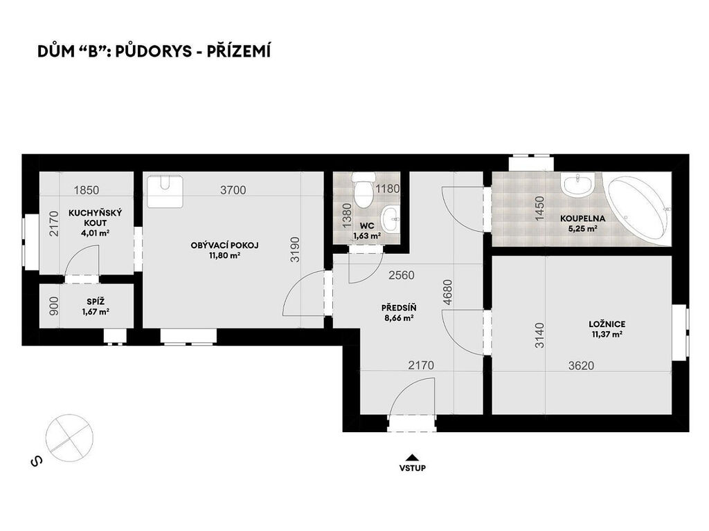 - Dům B přízemí: 44,39 m