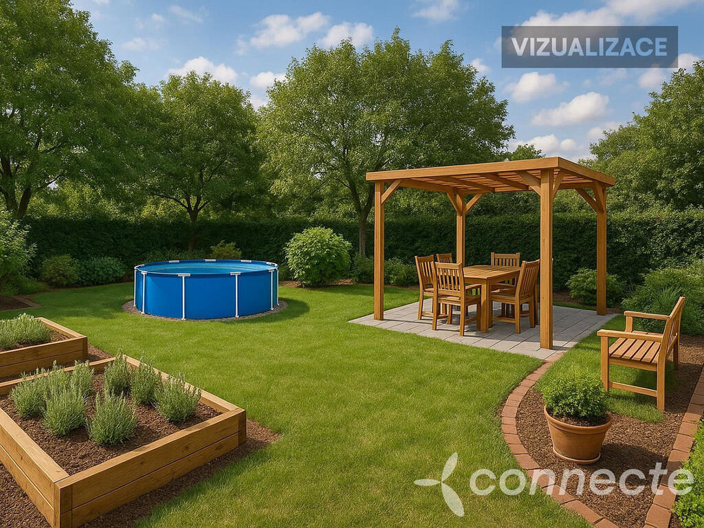 - Zahrada vhodná pro pergolu s posezením, bazén či vlastní bylinkovou zahrádku.