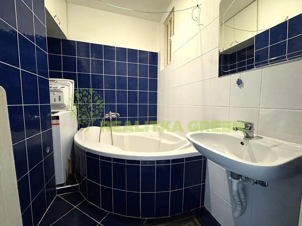 Byt se pronajímá bez vybavení. Zůstává jídelní stůl se židlemi, pračka.