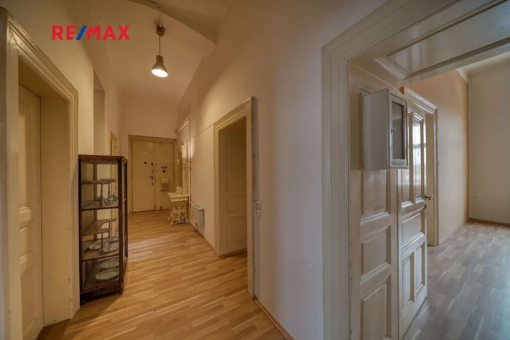 V bytě jsou původní okna, vstupní dveře, interiérové dveře a pod plovoucí podlahou jsou původní dubové parkety. Ideální pro celkovou rekonstrukci se zachováním původních prvků.