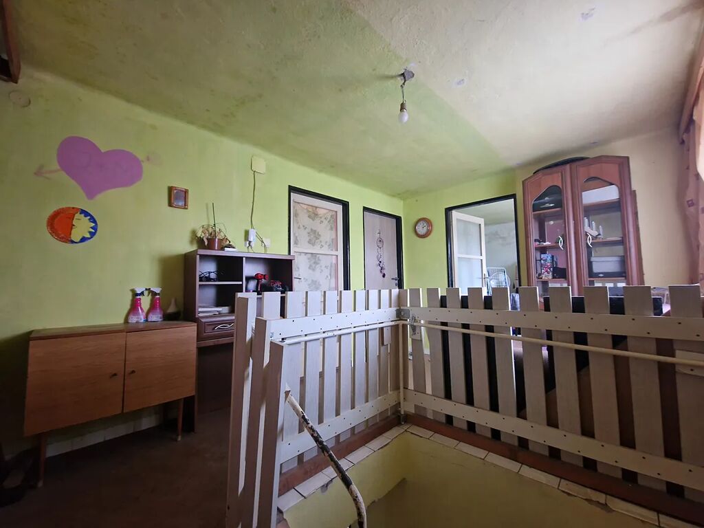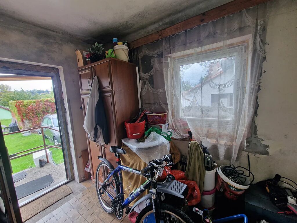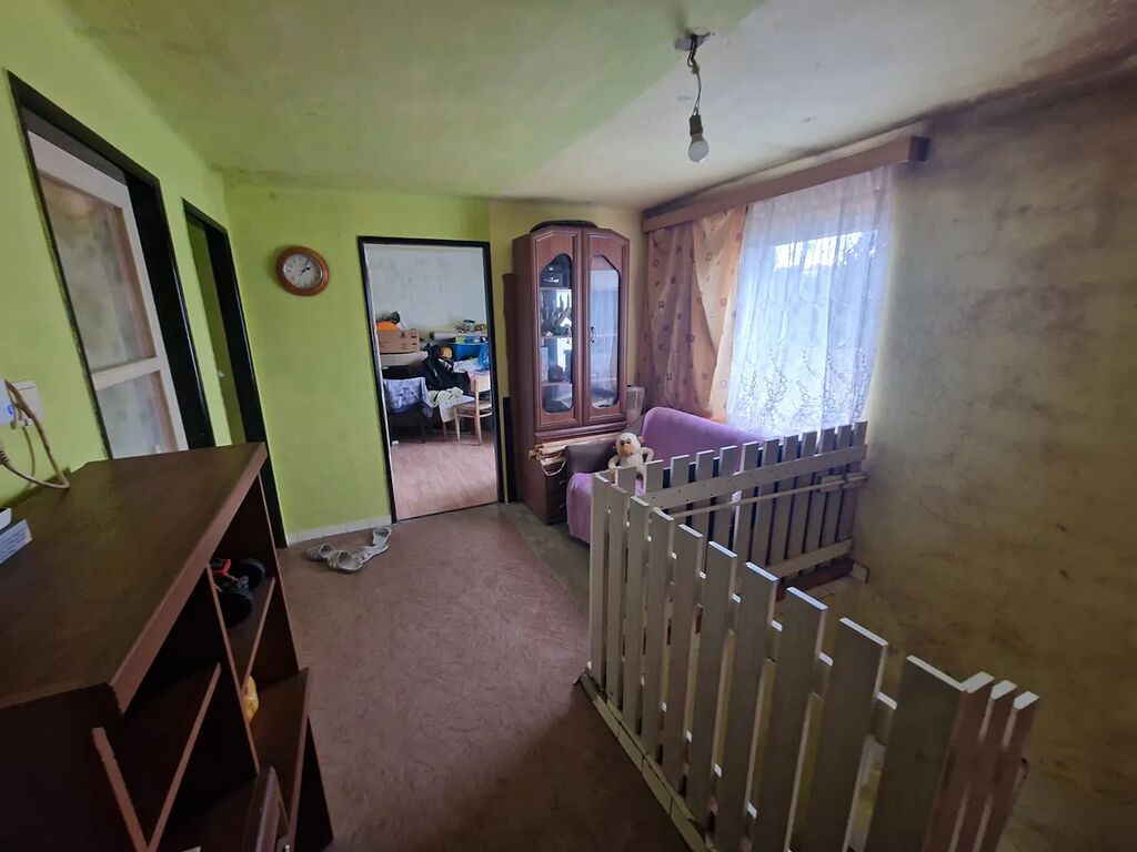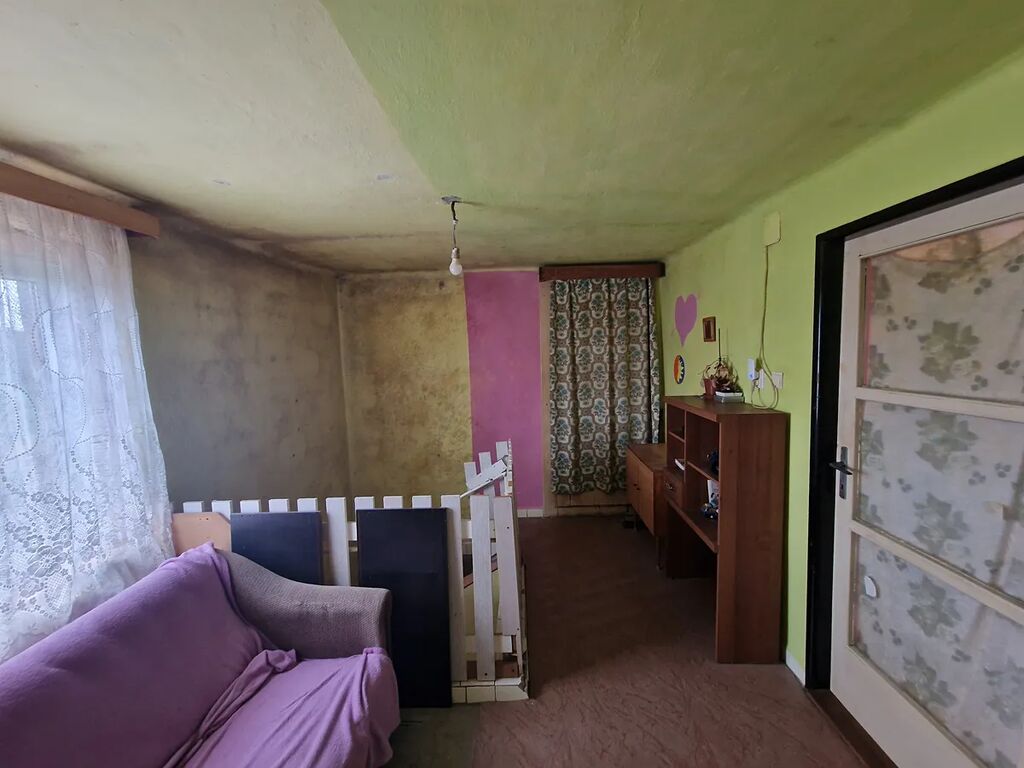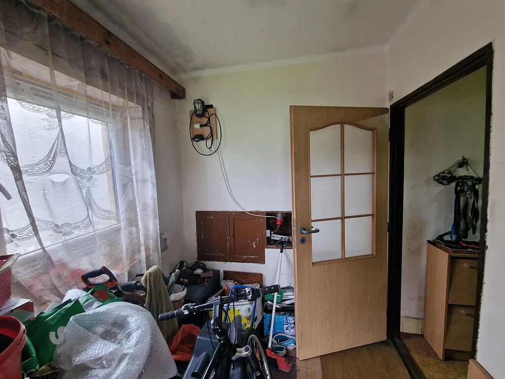 V přízemí domu je kuchyně, obývací pokoj, další pokoj, který slouží jako sklad, veranda, chodba a sociální zařízení.
