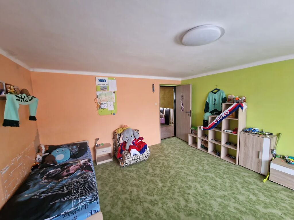 V podkroví jsou tři pokoje a půda. Podlahová krytina je různá, plovoucí, PVC nebo beton a koberec.